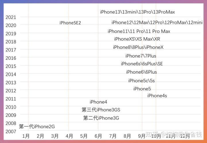 1.汇总并分析历史iPhone发售时间规律近几年iPhone新款发布的时间还是非常规律的自2012年9月iPhone5发布以来,除了iPhone12选择10月发布,其他新一代的机型都稳定在9月发售,估计还是会越来越规律。